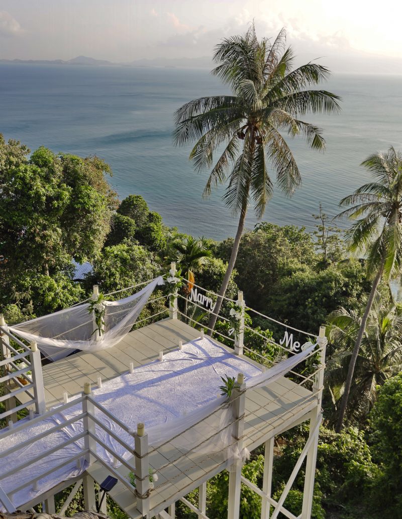 Proposing in Koh Phangan offers numerous advantages. The tranquillity of the beach ensures an intimate experience, free from distractions. As the sun dips below the horizon, painting the sky in hues of orange and pink, the romantic atmosphere is heightened, making it the ideal time to express one’s love. The gentle sound of the waves lapping at the shore adds a soothing soundtrack to the occasion, enhancing the emotional impact of the proposal.